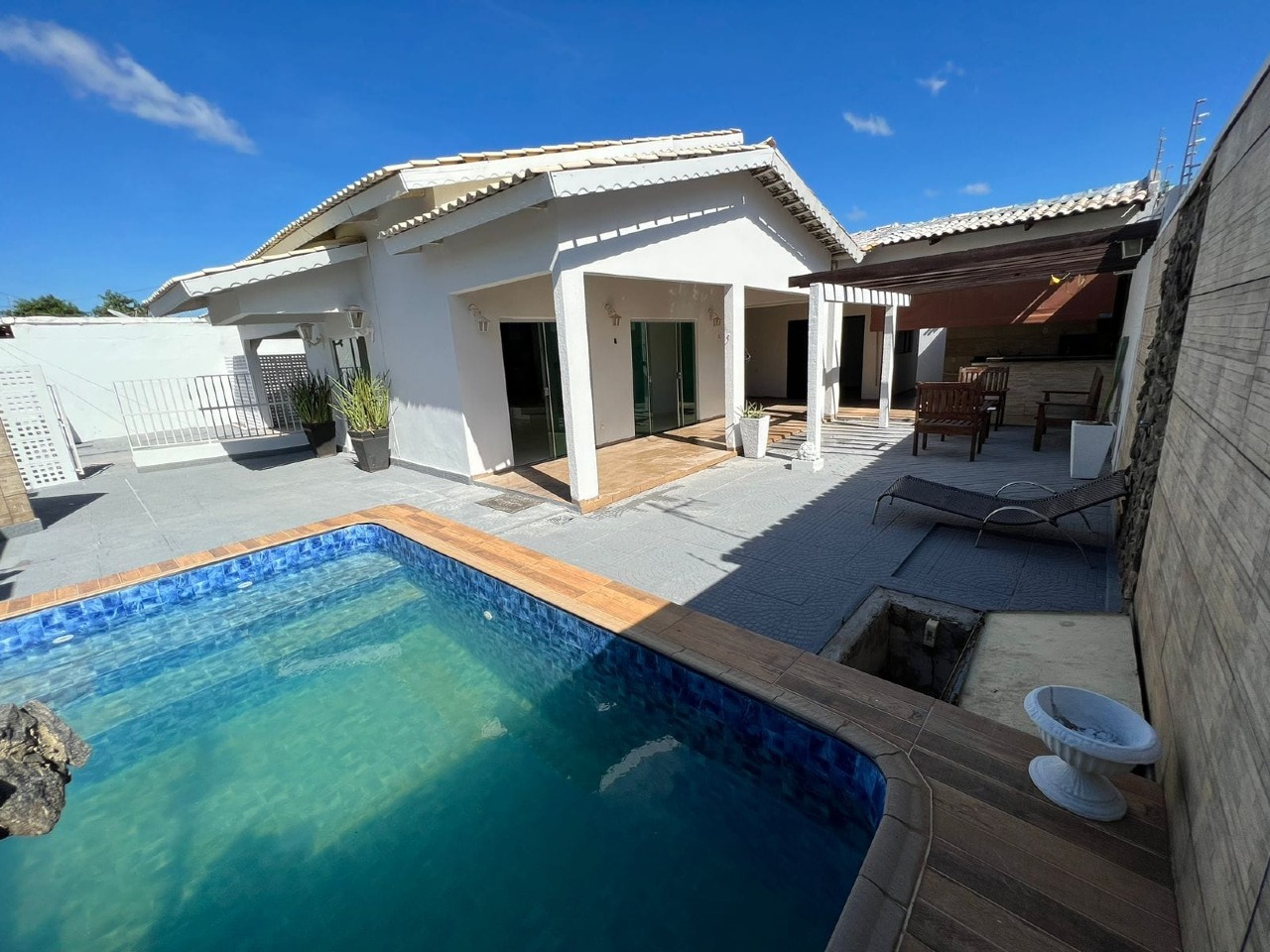 ARSE 71 (704 Sul) Terreno com 400m² e área construída 242m², casa com 03 quartos com armários (02 suítes, uma com closet e banheira e outra com mezanino), quarto de hóspedes (ou escritório), sala de estar ampla (02 ambientes), sala de jantar, cozinha com armários, lavabo, banheiro social, Área de lazer com piscina (com cascata), varanda gourmet com churrasqueira e pergolado, lavabo externo, lavanderia, despensas, depósito e garagem coberta para 02 carros (espaço para mais 02).